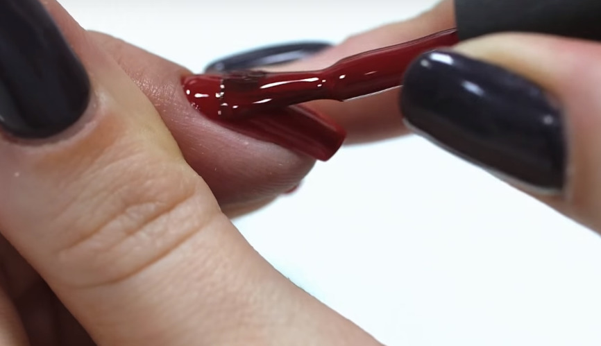 After the entire nail plate is processed, it must be oiled with oil to soften the cuticle and wait a bit until the composition is completely absorbed. After that, the hands and fingers are rubbed with a means to remove the fatty film and proceed to the painting itself. Keep in mind that no less than a quarter of an hour should elapse between the application of the oily agent and the shellac coating.