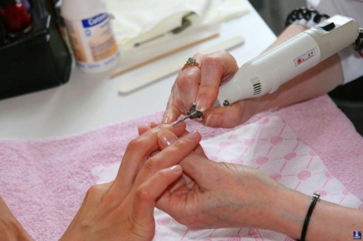 The tool should not be held in one place - it is necessary to drive the cutter smoothly and evenly over the entire surface of the treated nail plate. This should be done without effort. Pressing force must be set, focusing only on your own feelings,