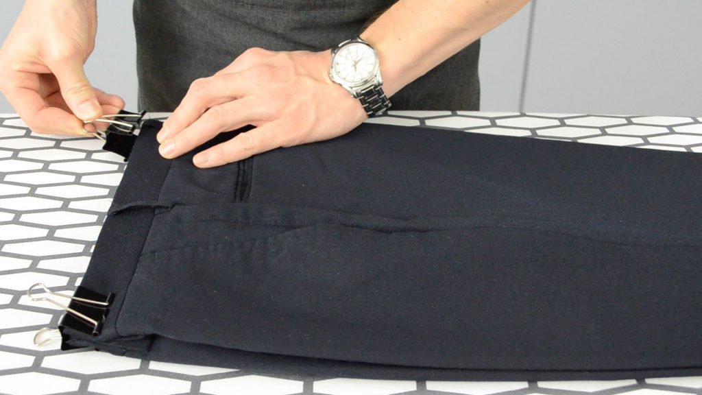 Trouser pockets and seams should be empty. Often, after washing, you can find twisted fibers or a pile of paper in them that can interfere with the ironing of your pants.