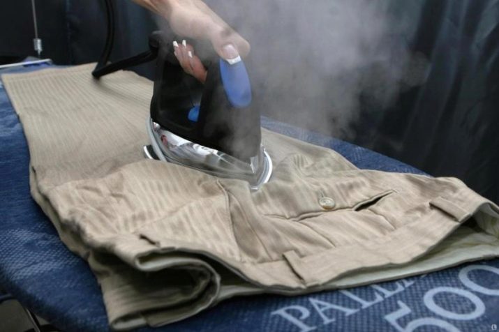 If the trousers cannot be ironed, they should be carefully steamed with an iron having a steam function or you can use the help of a steam generator. This process can also be carried out with the help of a regular iron: arrange it horizontally and steam your pants with the iron at a distance of 3 cm from the product itself. You should not touch the fabric itself with an iron. Thus, you will be able to steam off trousers more than once.