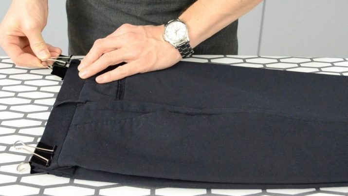 Carefully inspect the pants, visually make sure that they are clean, and there are no random spots.Pants are turned inside out, ironed out, with special attention paid to those areas where there are pockets and a belt. Their initial adjustment can facilitate subsequent work on pointing the right arrows. Using a small board will help you - it is also very convenient to smooth out shirts on it.