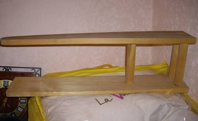 - using screws, you should fasten the top shelf to the bottom, and her, in turn, to the ironing board.