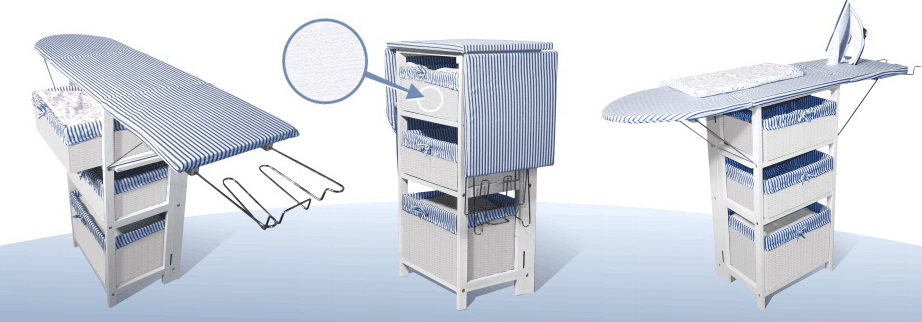 - In the chest hide all ironing accessories: iron, wristband, gauze and many other useful things.
