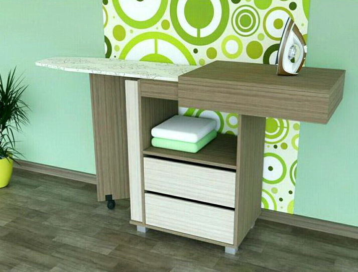 - "Transformers" is more convenient than ordinary dressers with an ironing surface. They are easy to fold, and the furniture will get its usual look. If you choose solid boards, in most cases they are inferior in size to folding models.