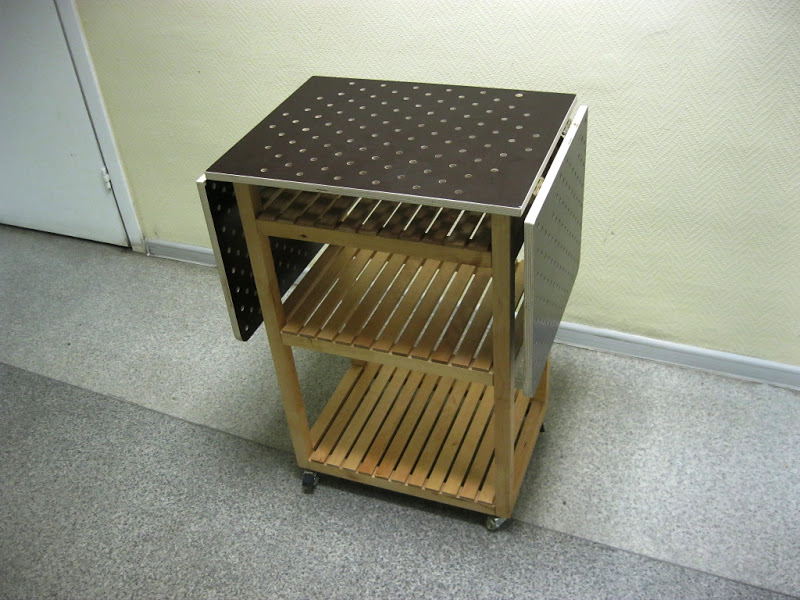 - Metal. To facilitate the construction, the models use through walls and grid surfaces. Baskets that fill the dresser are viewed from all sides. With the same success and use artistic forging. The metal for the ironing dresser must be well-protected with an anti-corrosion coating, otherwise it will eventually deteriorate from the fabric steaming procedure.