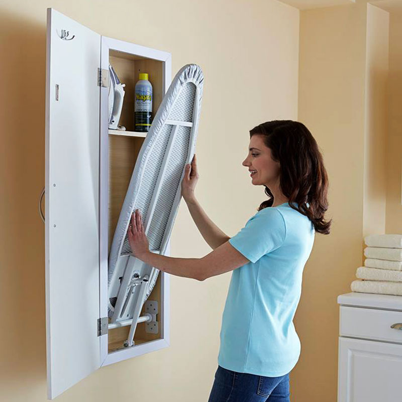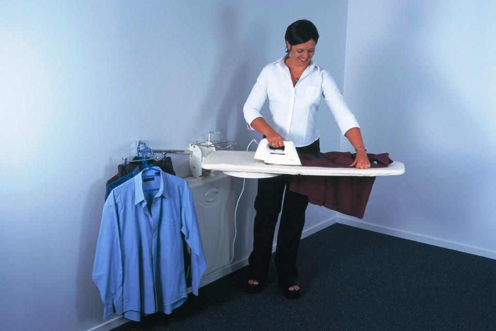 Hanging wall construction is not always framed by a wardrobe or similar furniture, in some cases, the board is simply attached to the wall. This is convenient if the room is intended for cleaning and other similar activities. Due to its simplicity, the tiller can easily be brought into position and also quickly removed. In this case, it is important to acquire reliable fastening mechanisms and screw the board well to the wall.