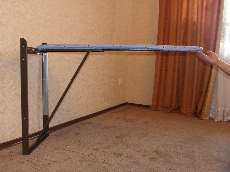 - Check the quality of support. A very important point is the fixture of the board support to the wall, cabinet or shelf, which guarantees the reliability of the trowel stays inside both in the folded and in the working position. With a weak or poor-quality support board may simply fall out of the niche in which it is located.