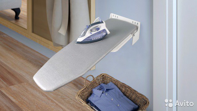 Ironing boards that are attached to the wall, most often hiding in a closet to hide the necessary object in everyday life and rationally distribute the space of the room. The wall ironing table will be convenient for those who do not have a pantry or special room for household needs in the apartment. Thus, it is possible to place all the necessary things in one place: an iron, a briquette with water, accessories for cleaning the iron, an additional armrest for the board and much more. The wall model is usually devoid of such advantages and can be placed anywhere in the apartment, even if it is not very convenient for the owners.