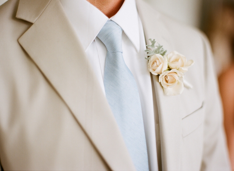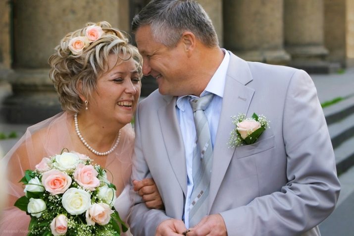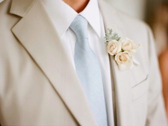 Traditionally, pastel colors or light shades should prevail in the clothing of the heroes of the occasion. The groom's clothes should have elements of rich pearl tones: a cream scarf, a white shirt, an ivory-colored jacket.
