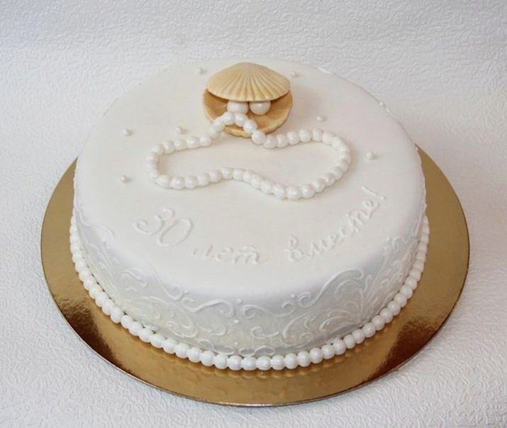 - desserts with a scattering of pearls of different shades, symbolic figure “30”, figures of the bride and groom.