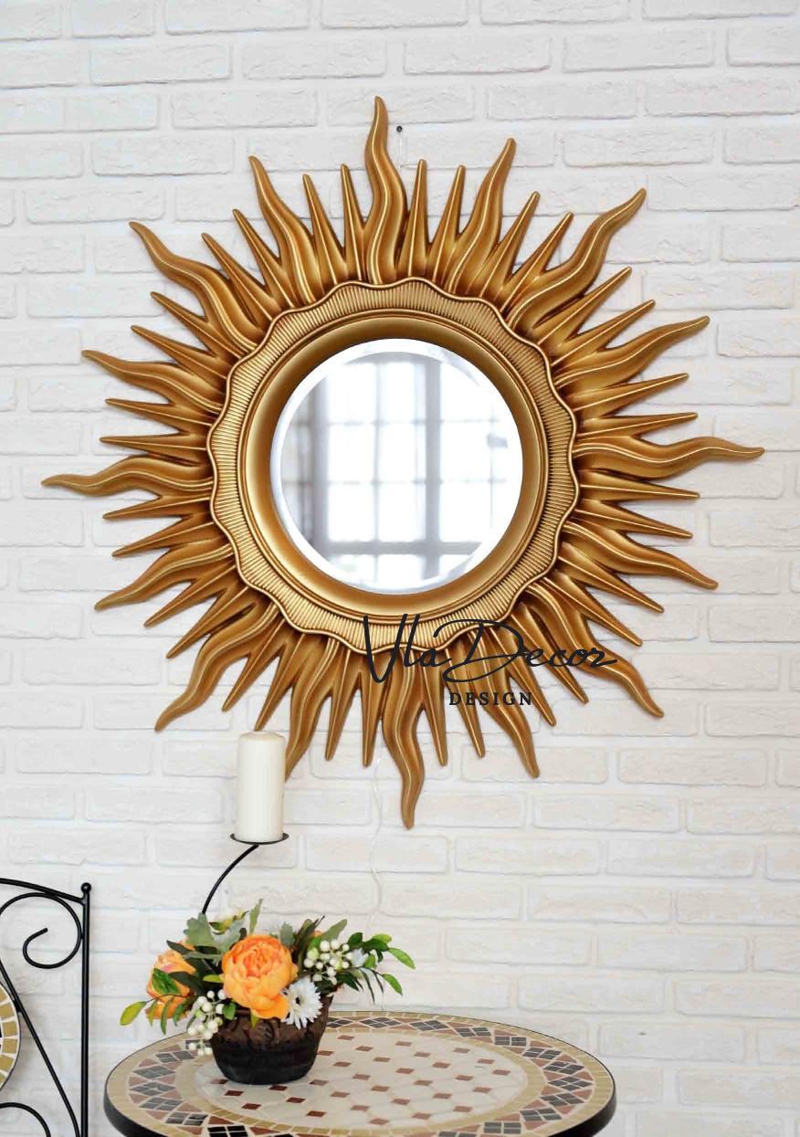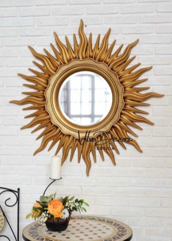 - Oval or round mirror, whose frame is made in the form of sunlight. This gift will give an additional effect to the interior.