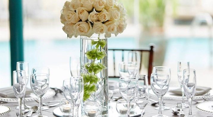The spouse should give his wife a bouquet of lilies, chrysanthemums or roses, and it is recommended to decorate the gala evening with small bouquets of white flowers.