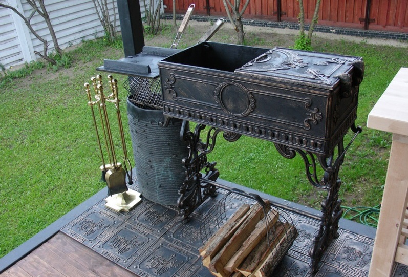 If the heroes of the occasion like picnics or have a cottage, you can give a cast-iron brazier with grills, skewers. Forged items can represent the initials "young", their last name, weave into hearts. Such a gift, of course, will “cost a pretty penny”, but you can make it a collective one. Definitely, it will be more useful and more pleasant than a faceless cast-iron figurine. Holders of cottages or country houses can be presented with a cast-iron grating for the fireplace, tongs and similar tools. A good option - street lights, small benches.