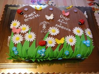 Professionals often make cakes in the shape of a large chest on which jubilees sit. Also popular wooden huts, cakes in the form of a large hemp.