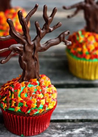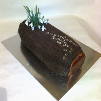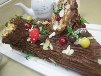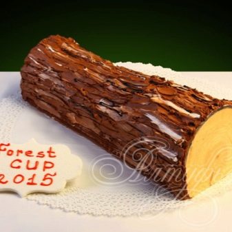 At such events you can find a chocolate cake made in the shape of a tree trunk. They are often decorated with multi-colored flowers and bright leaves.
