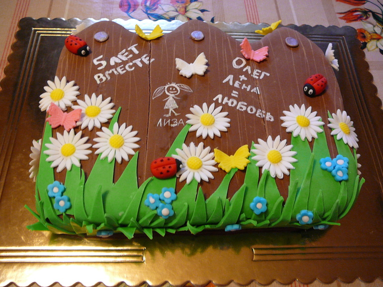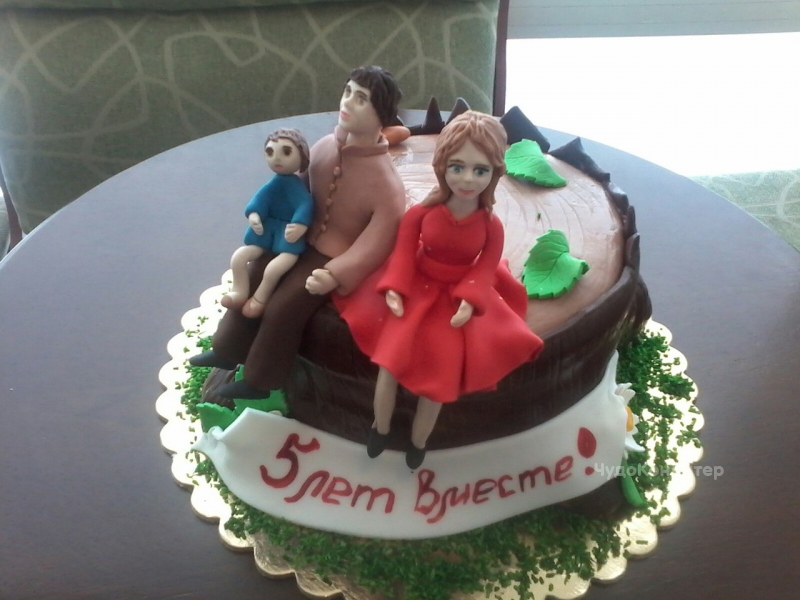 Marriage after 5 years of marriage becomes strong as wood. Parents of the characters of this event are compared with roots, and children - with young shoots. The family begins to grow like a tree. Hence the name of the celebration. Holiday mood should be fully reflected in the event symbol. It does not matter if you order a cake from experienced pastry chefs or cook it with your own hands.