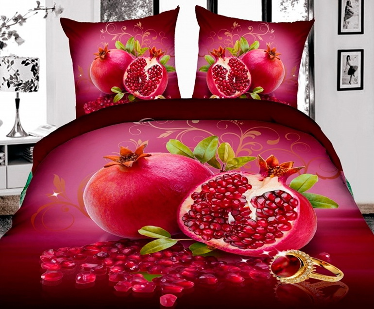 - Festive tablecloths of linen or silk. It is possible with embroidery of pomegranate color or pomegranate fruits themselves.