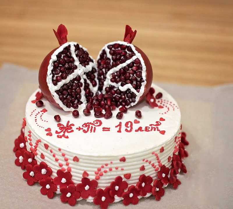 The name of the pomegranate wedding 19 years ago was no accident. During this period, feelings between spouses cool, and the red oriental fruit is designed to fill the cup of love with new juices and bright colors. Pomegranate is a symbol of sensuality and energy, vigor and candor, love and well-being.