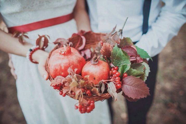 It was not for nothing that in ancient times the stone garnet was considered a product of magic, able to revive love passion and bring abundance. Therefore, it is customary to give it to the closest people, reminding them of the strength of their feelings. Noting the pomegranate wedding, it is customary to focus on ruby gems and pomegranate fruits.