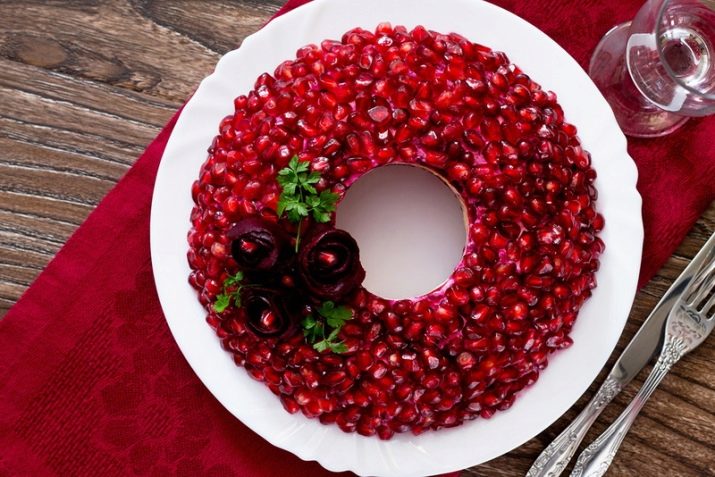 The menu includes salads decorated with pomegranate seeds, drinks based on pomegranate juice, alcoholic cocktails with its addition. For example, champagne with natural pomegranate juice. And for lovers of high degrees: vodka with orange liqueur and scarlet pomegranate juice.