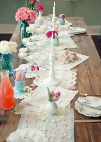 As we have already mentioned, the table should be covered with a chintz tablecloth, and in addition, the decor can be complemented with napkins of the same material. If you pre-starve them, they will look very dignified.