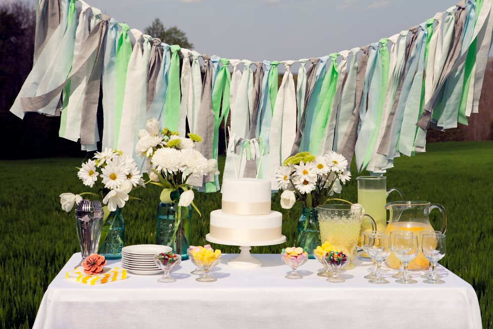 The festive table must be covered with cotton fabric., and it is desirable if the young spouse will make a small embroidery on it. Cloth tablecloth, as well as all the ornaments on it, should be designed in delicate pastel shades. On the anniversary must certainly be witnesses, as well as parents of both young.