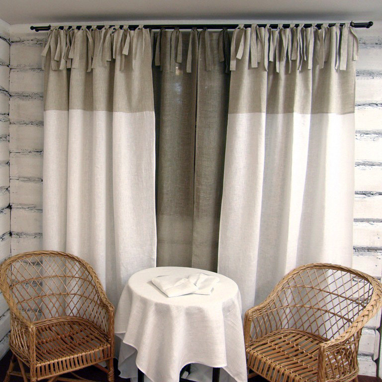 - Many family friends traditionally give small curtains of this material on this day. For example, it can be curtains for the kitchen. Now you can find beautiful options made of flax. In addition, it is now possible to find interesting and options for fabric blinds. They look modern and stylish.