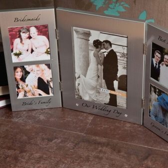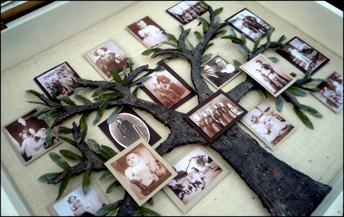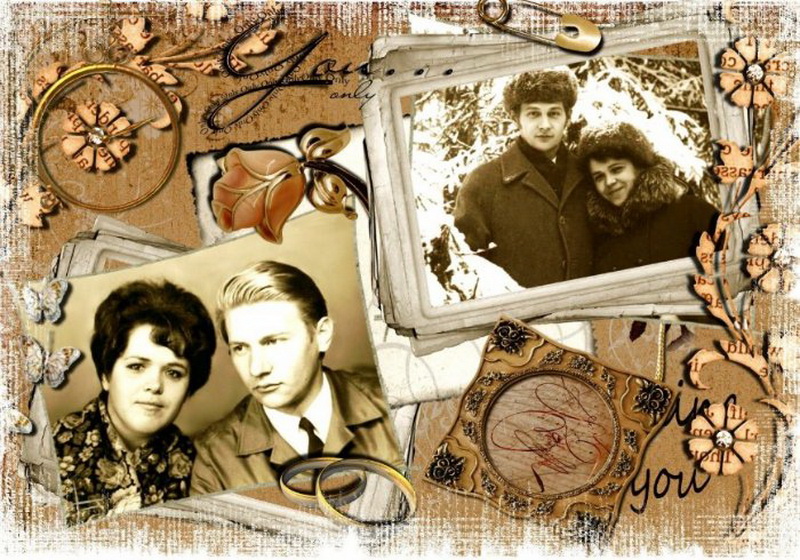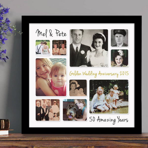- Photo collage from old photos. Think of romantic or funny inscriptions. It will be nice if all family members participate in its creation.