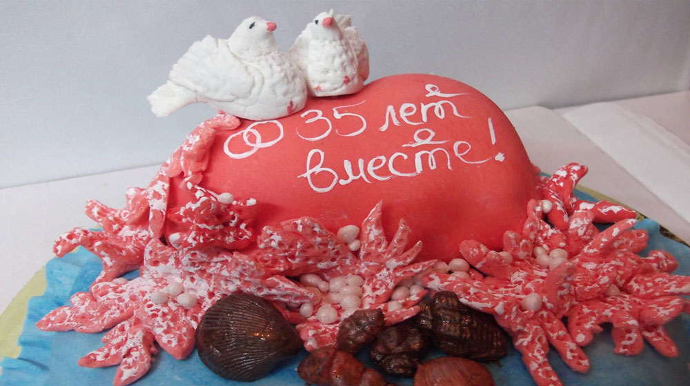 Mark in 35 years after marriage is called coral or wardrobe wedding. Accordingly, surprises should be in this category. You can play with the color, giving the anniversary with a large bouquet of coral-colored roses. The ruby stone in its mystical meaning serves as a talisman for good people, enhances their feelings and embodies dreams. Ruby anniversary (40 years) - proof of the strength and health of the family (the same value is the stone itself). Souvenirs and jewelry with this bright mineral will be symbolic.