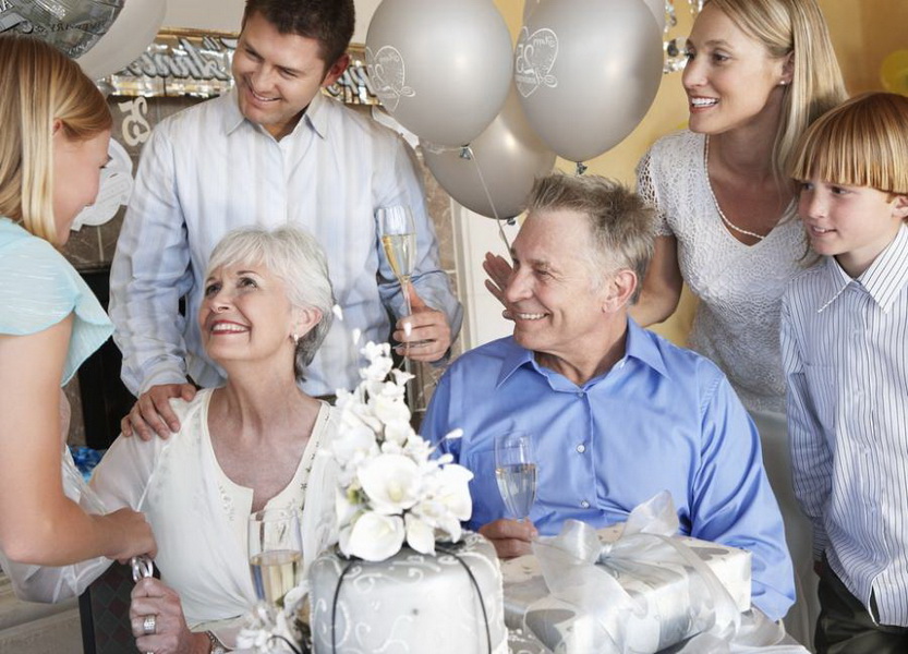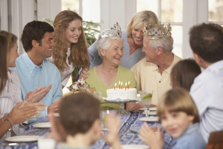 Options for elderly spouses can be presented with cozy blankets or cute knick-knacks to the house: a key to the door, a rug, etc. Gifts do not have to be material. You can cook dinner and gather the whole family together. So you will save the "newlyweds" from the extra fuss. Think over the script of the celebration, pick up original greetings.