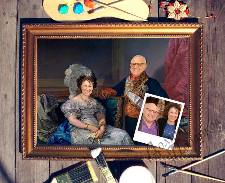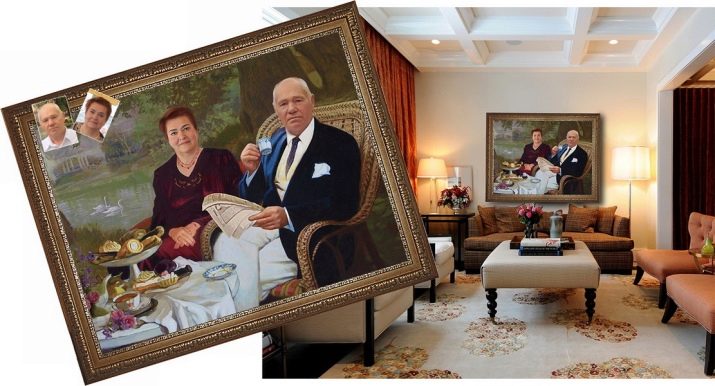 - Family portrait. Today there are many techniques for their implementation. This mosaic, and the creation of paintings from small photos and, of course, a classic watercolor or oil.It will be necessary to find the artist in advance and give him a photo in which he will work.