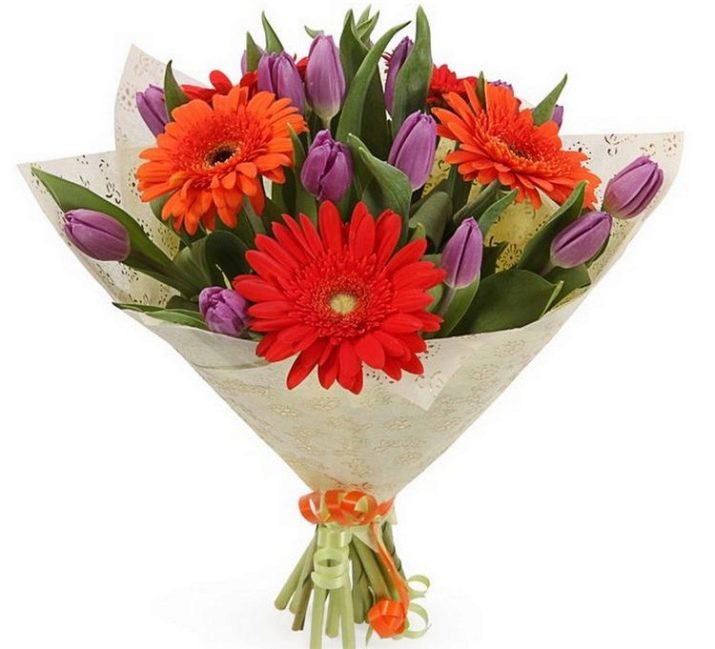 Whatever flowers you choose, they must be the freshest and tastefully packaged. The latest trends in bouquets are minimalism. Flowers either fit in one growth and are tied with a ribbon (at the same time thorns are removed from the roses), or they are decorated with plain eco-paper in the form of a web of beige, green or white shades.