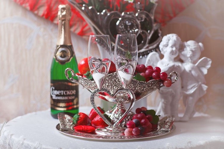 A nickel wedding has its own traditions and established rituals, and the peculiarities of the celebration are associated with them. In the old days, spouses celebrating the 12th anniversary of their marriage received dirty dishes from their guests. The hostess had to clean the pans, pots and spoons to shine. If she coped with the task, the family was expecting well-being in relationships and in the house. Lazy wife ritual cleared problems in marriage.