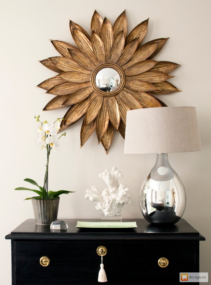- Bronze rimmed mirror. Such a present will be delighted by any fashionista. In this case, you can hand as a wall mirror, and desktop.