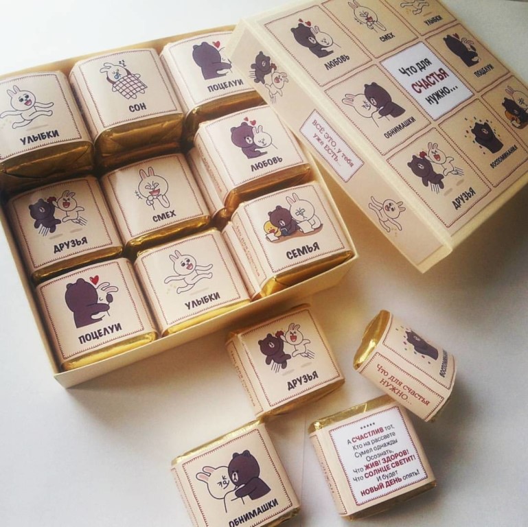 In addition to the "bronze" gifts, you can beat figure 22 and present thematic surprises. For example, it may be 22 chocolates or cupcakes, 22 medals or twenty-two items that are collected in the family. To make the gift original, you can not just present chocolates, but wrap them in pre-ordered covers in a printing house. They can be pictures of husband and wife, as well as pictures, symbols of a bronze wedding. Such gifts will be remembered not only spouses, but also guests of the holiday.