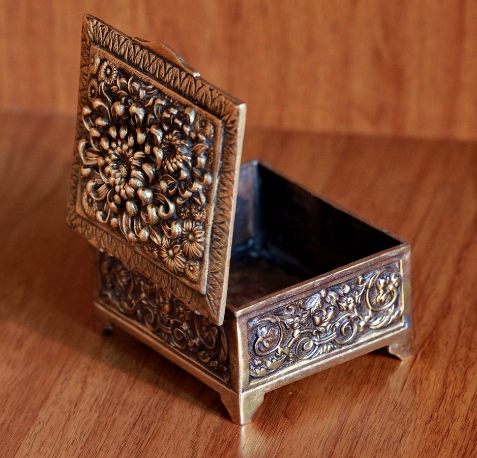 - Bronze stand or jewelry box. Such a product is useful to every woman. Thanks to him, his wife will be able to store all the jewelry in one place.
