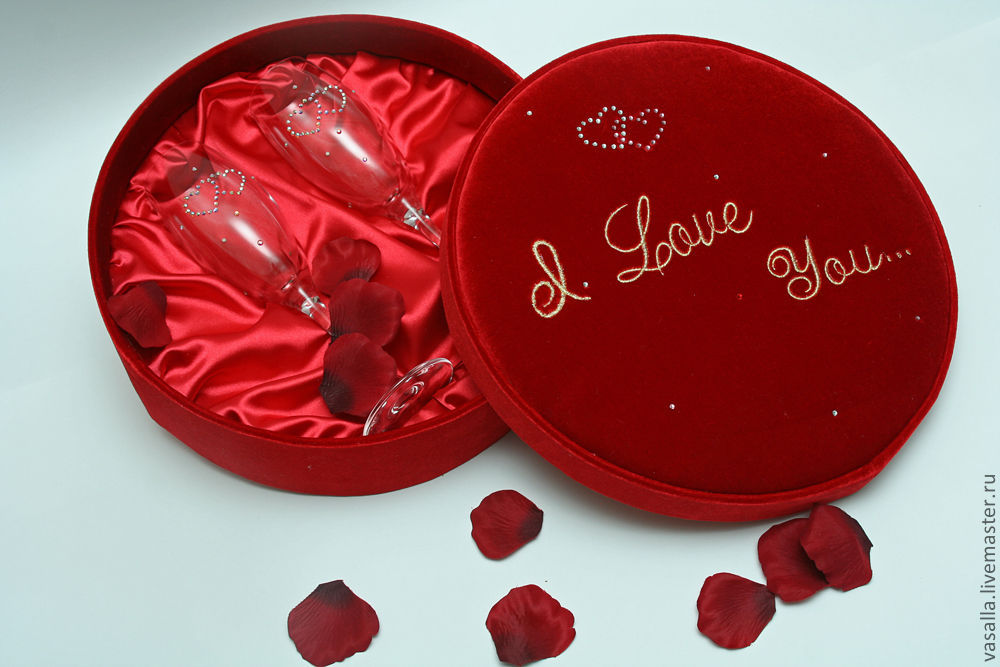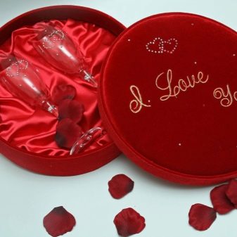 It is possible to give any decoration and pack it in a beautiful red velvet box. You can also purchase a spacious casket that is upholstered in velvet.