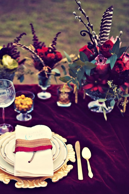 As a rule, this day the restaurant or house is decorated in bright colors. It is quite possible to use the velvet material itself for decorating tables and interior. In the decoration of the room should be dominated maroon and red tones.