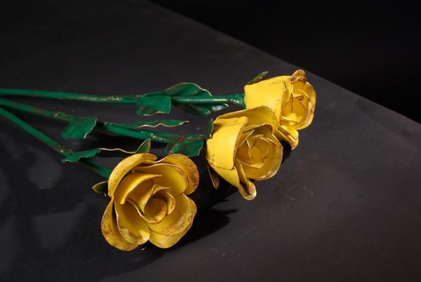The needlewoman's wife will definitely rejoice at a beautiful basket or box with multi-colored balls of high-quality wool or a set for creativity. And of course, do not forget about the luxurious armful of flowers. A bouquet of forged roses will be unexpected and memorable. If you turn to a proven professional, they will be virtually indistinguishable from the real ones.