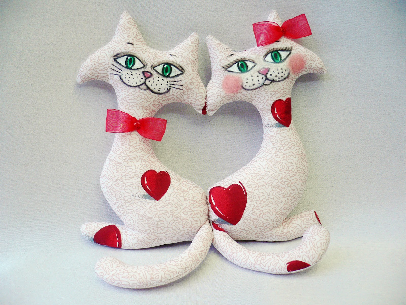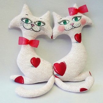 - souvenir toys made of chintz: decorative pillows, hearts, love-dolls in the form of a cat and a kitty, birds, a pair of horses;