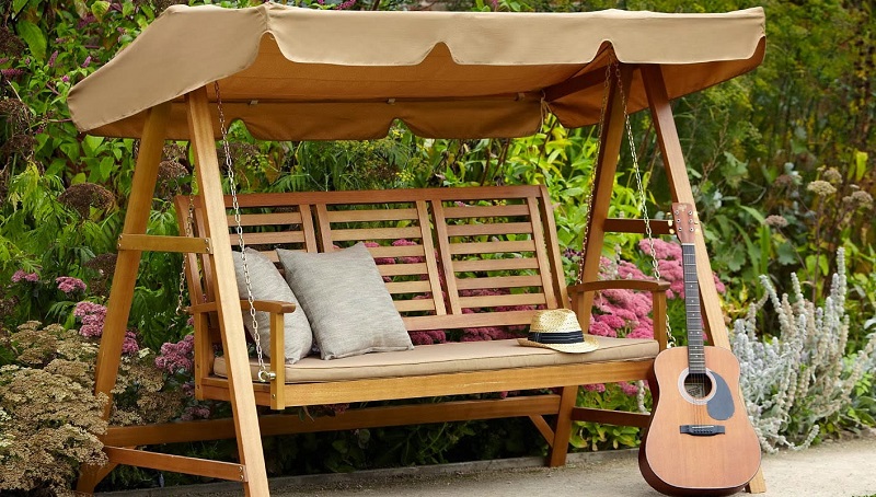 The pool or deck chairs are suitable when parents live in a private house or have a cottage. Sunbathing there, mom and dad will undoubtedly be grateful to their offspring for comfort. And also fit garden swings and benches, made in an unusual shape and style.
