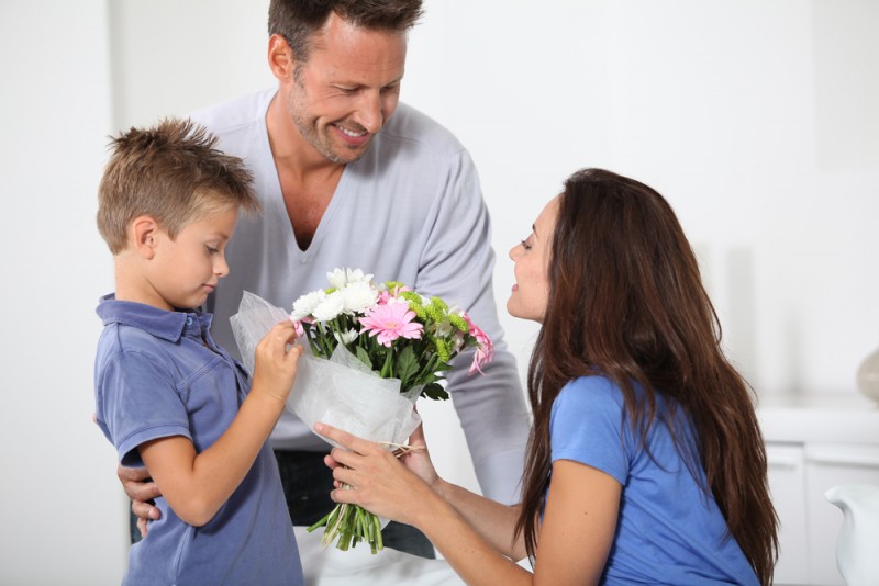 And, of course, any gift is better to present along with a huge bouquet. So a man can bring happiness to his spouse with his attention.