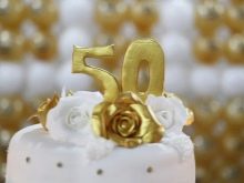 Cake - an important addition to the identity. At a gold wedding, it is customary to make a big cake, to decorate in a wedding theme (figures of newlyweds, a pair of rings, numbers, swans, inscriptions). Now pastry chefs are able to create a real masterpiece, which jubilees and guests will certainly appreciate. Spouses, celebrating the 50th anniversary from the date of the wedding, are far from being young and you can pick up a gift taking into account the age of the anniversaries. For example, a humidifier, heated blanket or appliances to facilitate homework (dishwasher, microwave, vacuum cleaner, convection oven). Close relatives should be well aware that it will be useful to the heroes of the day.