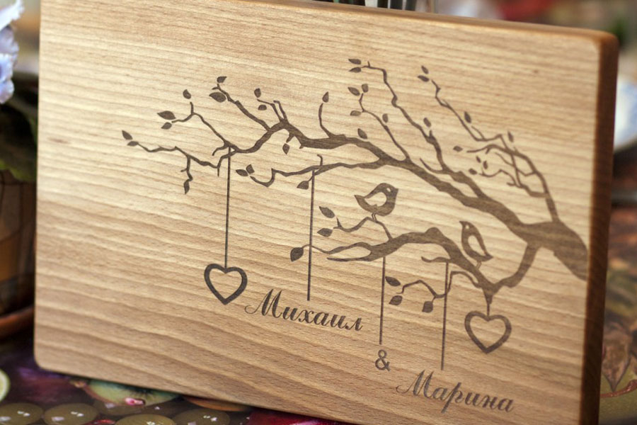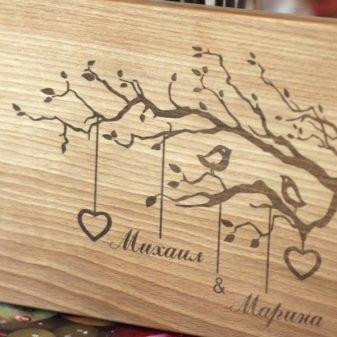 As an original and unusual present you can choose a picture that is painted on a tree in a special way. Now you can find the finished products of this type or order a picture with a unique storyline. Such a work of art will be an excellent decoration of the kitchen or dining room, and will also remind your wife every day of the wonderful day of your first anniversary.