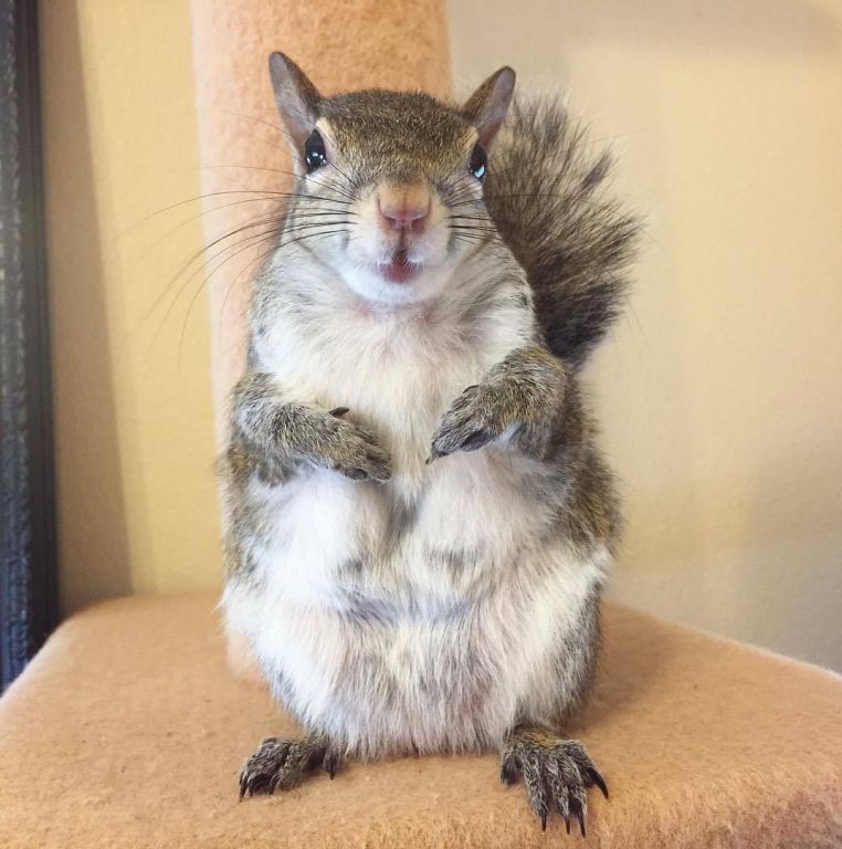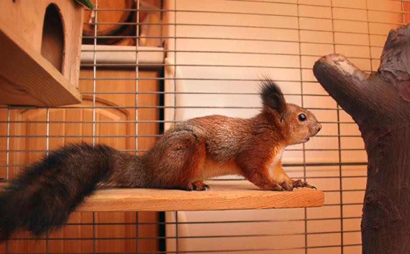 - Squirrel. Another animal name is Veksha. Fast and very bright animal with a long fluffy tail and black shiny eyes. Quickly go to the contact and gets used to the owner. In order for the protein not to become bored in captivity, it is necessary to provide it with spacious conditions of detention. It should also take into account the fact that she changes her coat for the season. With proper care and nutrition can delight its owner to 15 years.