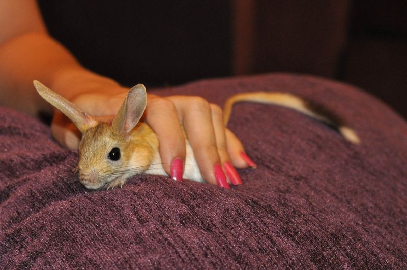- Jerboa. At first glance, a small mouse-like rodent causes location with its bizarre appearance. The first thing that catches your eye is large ears and just a huge, in comparison with a small body, a beautiful tail with a tassel. The hind legs of the animal are much longer than the front ones, therefore the jerboa moves by leaps. Home jerboa - affectionate, harmless and manual.