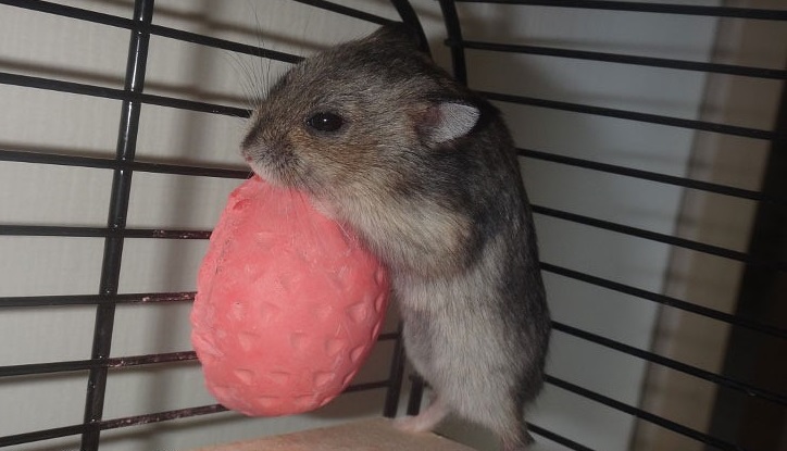 - Toys for fun and entertainment. It can be absolutely any object that your pet likes.One small animal may like a small wooden figure or a small plush toy, and another will like a bright bottle cap. You can decorate the cage with colorful accessories purchased in the store.