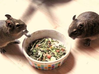 Many owners do not trust feeds that are produced by different manufacturers, so they make a list of products for their pets on their own. When preparing the ration, it is necessary to take into account that the degu squirrels are rodents. Accordingly, food should include foods such as regular oatmeal, various cereal products, such as buckwheat or peas. In addition, you can add a little crushed crackers.