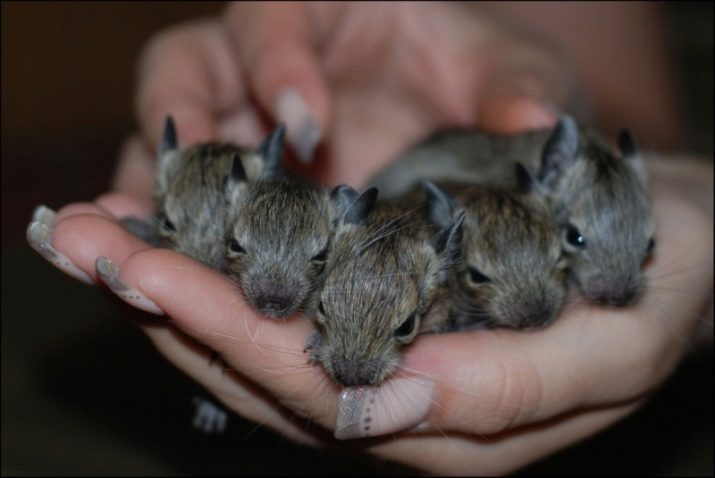 Degu are also distinguished by excellent hearing and sense of smell, which gives them the opportunity to move quickly and be well oriented in space both day and night. The animals themselves are very small: up to 20 centimeters in length and weighing up to 350 grams.