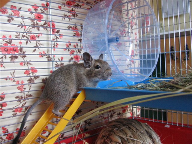 Cell cleaning should occur 1 time in 7 days, which allows you to save power and plan your care. Degus has a good immunity, but we must bear in mind that this does not apply to colored individuals. Observing the life of a Chilean squirrel is a pleasure. To train her is pretty easy. But it is important to take into account possible problems: